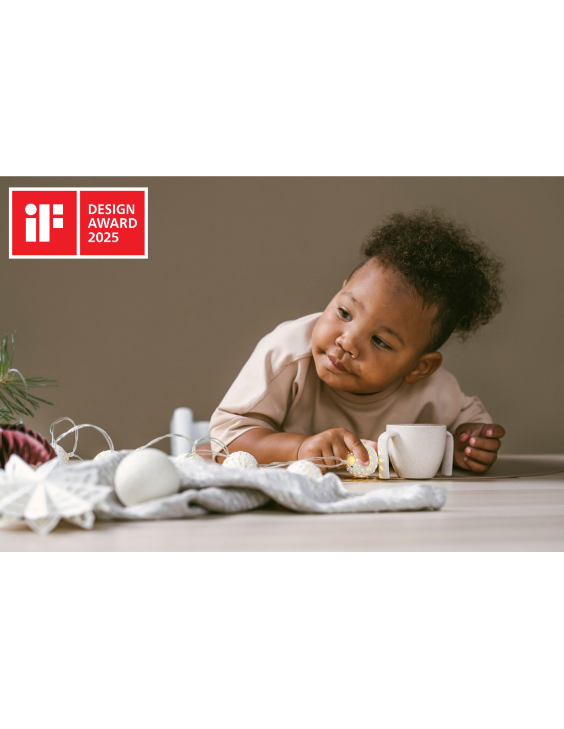 - Das clevere Design des Tellers unterstützt das Kind auf seinem Weg zur selbstständigen Nahrungsaufnahme.