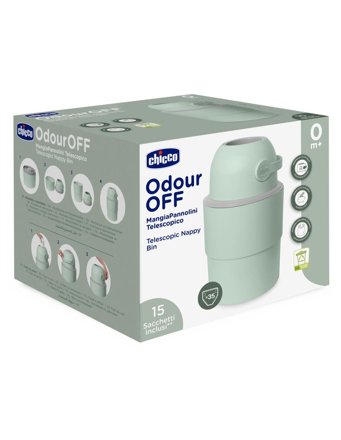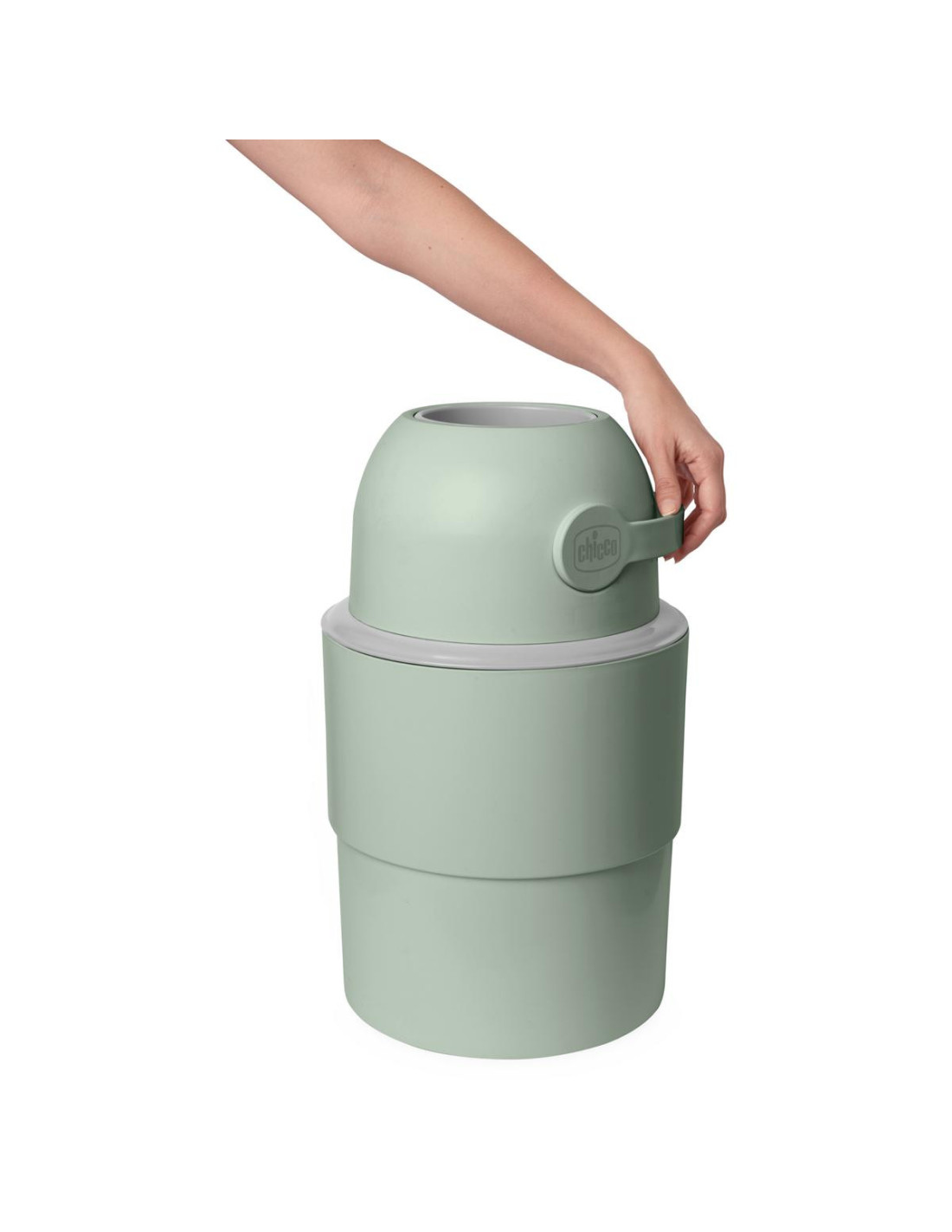 Der Windeleimer Odour Off von Chicco hält unangenehme Gerüche zuverlässig in seinem Inneren.
