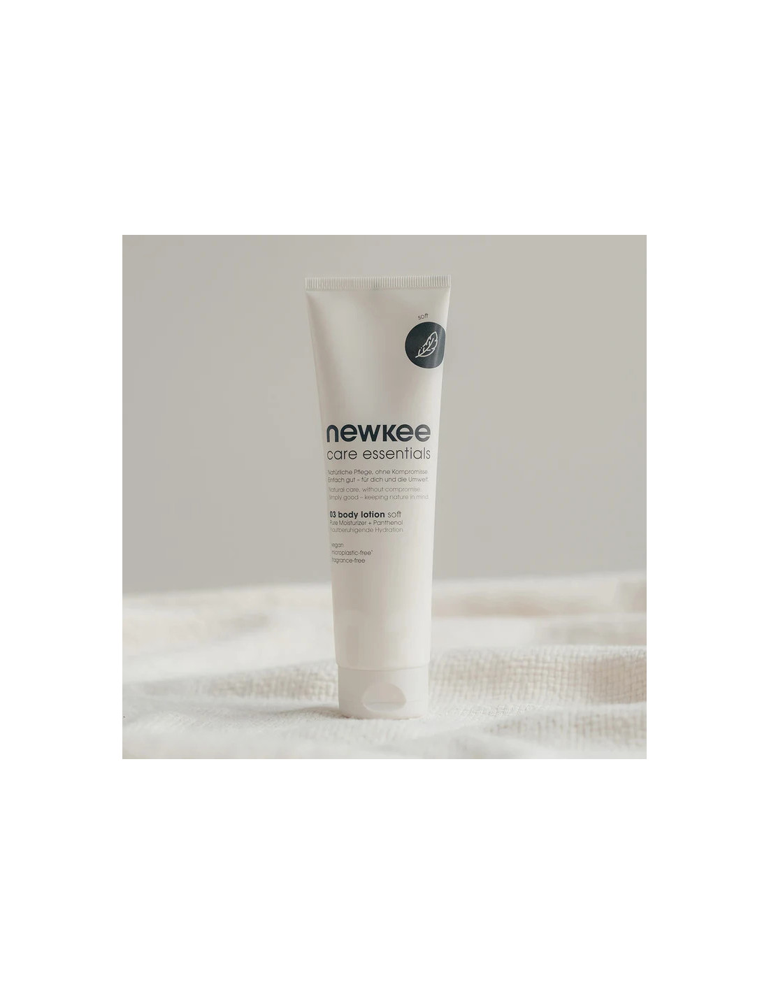 Die newkee body lotion soft ist eine vegane und nachhaltige Pflege für trockene Haut. Die sanfte Bodylotion ohne Schadstoffe, Parfüm und Duftstoffe ist zudem frei von Mikroplastik, Parabenen und Silikonen.